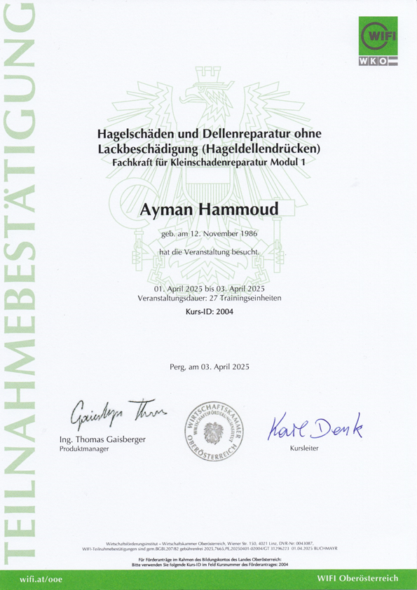 Hagelschaden und Dellenreparatur ohne Lackbeschädigung (Hageldellendrücken)